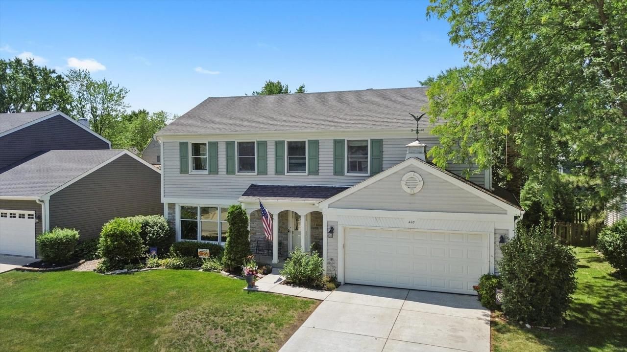 **Buyers got cold feet** So here is your chance to strike. This charming home is centrally located in neighborhood with ponds, parks and walking paths. The kitchen features cherry cabinetry, under-cabinet lighting, gleaming oak hardwood floors, stainless steel appliances, and an expanded eat-in breakfast area with bump-out for added space and natural light. A Pella sliding door with built-in blinds leads to a cedar deck, perfect for relaxing or entertaining. The living room features a wood burning fireplace with an area to store your logs, a nice-sized dining room to entertain in and a large recreation room in the basement. The spacious primary bedroom suite includes a private bath with dual sinks, huge walk-in shower and ample storage. The three other bedrooms are very nice sized. Enjoy quality finishes throughout, including solid 6-panel oak doors. Exterior upgrades include vinyl siding with a stone facade for enhanced curb appeal, a video doorbell system, Andersen tilt-in windows for easy maintenance, and detailed landscaping. Major mechanicals-furnace & A/C were replaced in 2020. Driveway replaced 2018, Roof re-done 2014 and deck replaced 2010. Home has been repainted and has new carpet in the basement. Home is in fantastic condition but being sold 'As-Is.