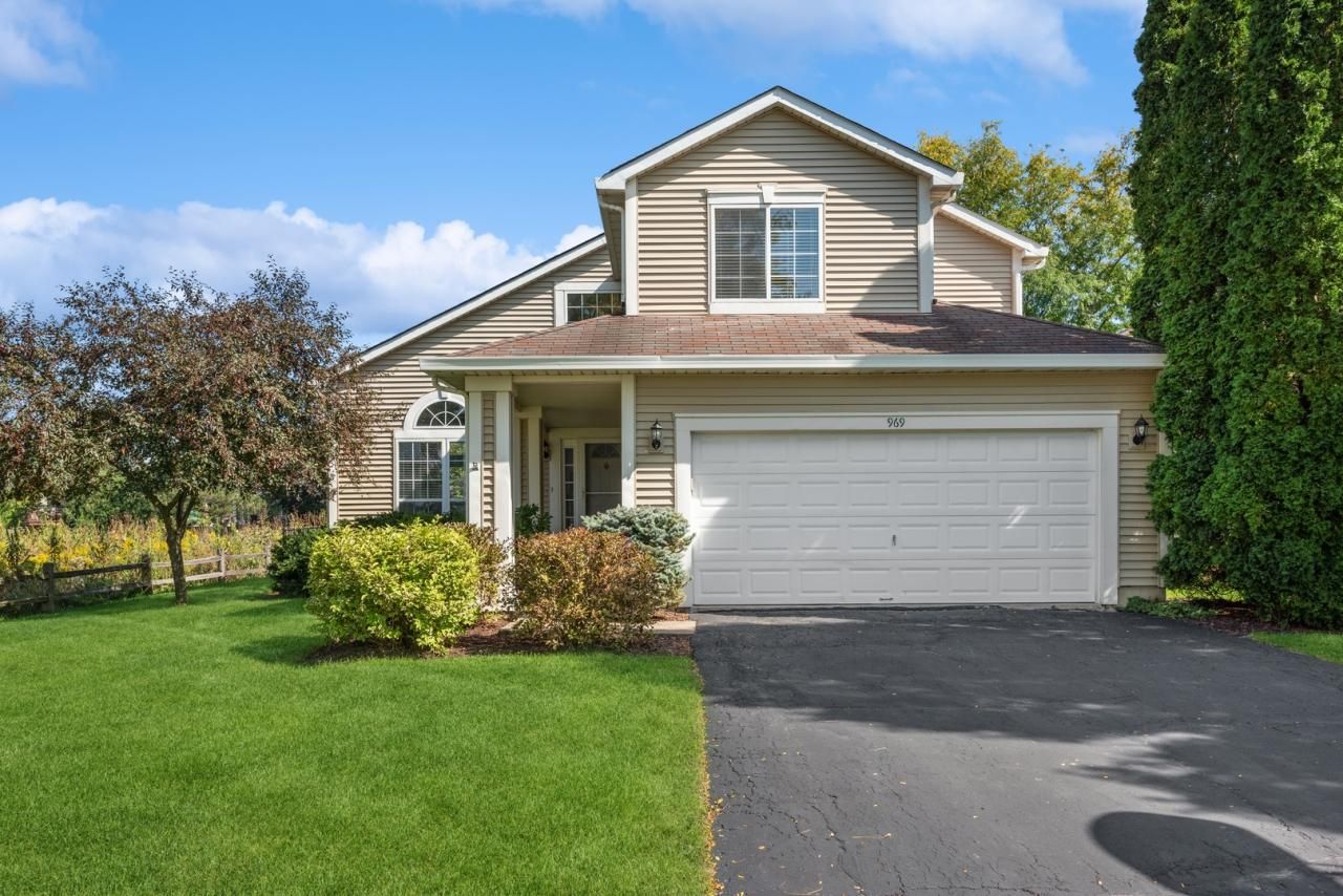Lovely 3 br, 2.2 bath home sits on a premier lot backing and siding to wetlands. Volume Ceilings as you enter into the homes in living and dining areas. Eat in kitchen with white cabinetry, beveled glass sliding glass door leads to patio and beautiful wrought iron fenced yard. Spacious family room has fireplace with gas logs. Wood laminate floors on entire 1st level. Updated powder room and 1st floor laundry. Master bedroom has private master bath and walk-in closet. Master bath has skylight, double bowl vanity & soaking tub, Spare bedrooms have double door closets. Basement is fininshed with rec room, office, 1/2 bath and a bonus room with built-in book shelves.. Diner benches & table stay along with metal shelves in basement and garage plus battery back up for sump pump. Furnace & central air 2016, Oven/range & micro-wave 2021, Refrigerator & Dishwasher 2017, Vinyl Siding 2023.