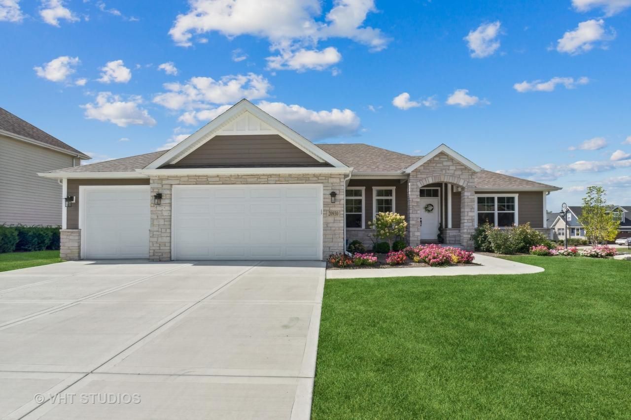 Accepted offer. Better than new custom built ranch with an unfinished English basement. Featuring 3 bedrooms and 2 full bathrooms. White Aristocraft kitchen cabinets that have double crown moulding with quartz countertops, custom tiled backsplash, deep single bowl sink with trending black faucet. Cabinets are plywood base with soft close hinges. All GE appliances with finger resistant Stainless steel. Primary wing has natural light and bathroom has custom glass accent tiled walk in shower, double vanity with quartz countertops and large walk in closet. Formal dining/flex room currently used as an office opens to a great living room loaded with windows, a Heat and Glo fireplace with fan blower and views of the backyard. Large laundry/mudroom with tiled floors and deep sink with cabinet. Walk out to the low maintenance composite deck with vinyl rails and have access to the large backyard. On 0.32 acre lot fully fenced with aluminum metal fencing with 3 keyed gates. Custom flooring by Weather Tech in the the 3 car garage. Concrete driveway Built in 2021 and moving due to work. Come preview, fall in love and make an offer.